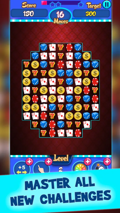 Casino match 3 is a fun and challenging combo of Match-3 and Slots gameplay! Enjoy each and every level with entertaining challenges.