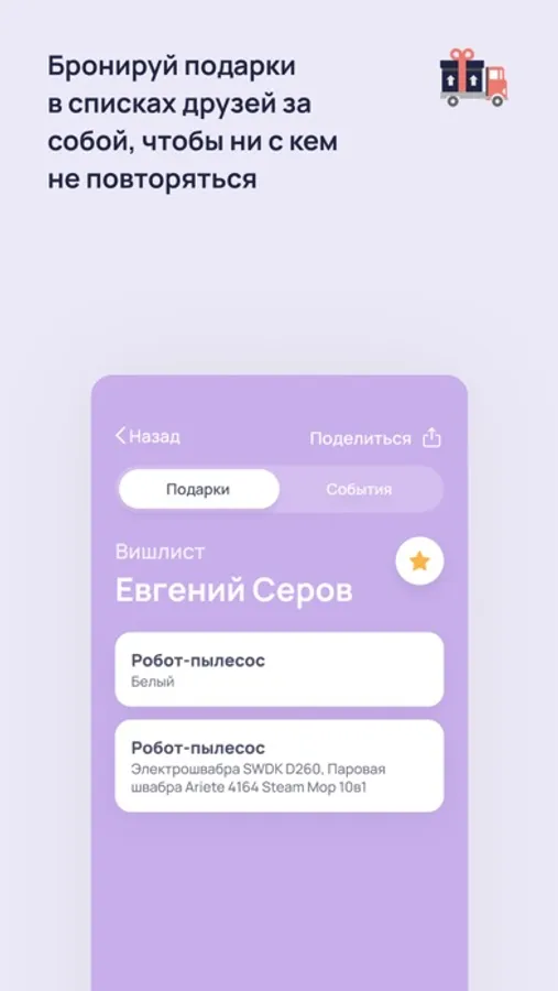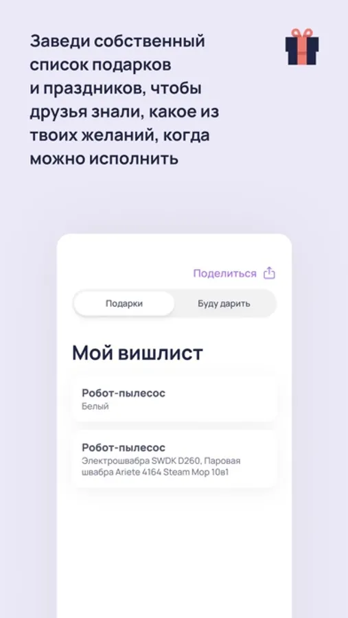 Создавайте свой список подарков, праздников, чтобы друзья могли видеть, что вам подарить.