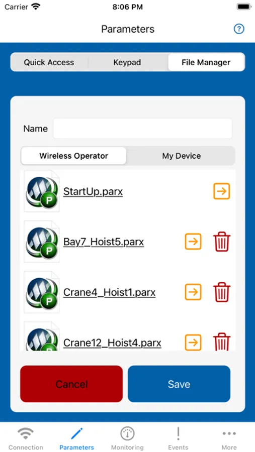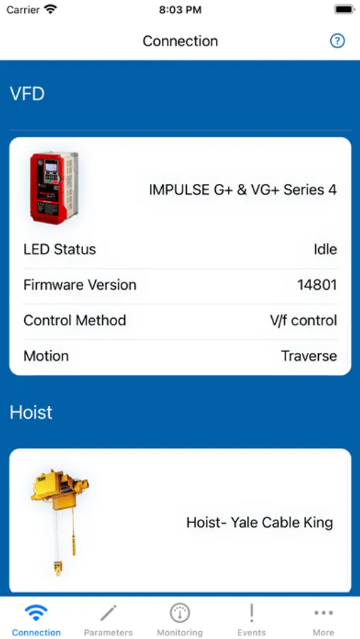 Using Intelli-Connect™ Mobile, you can monitor and troubleshoot a Magnetek variable frequency drive (VFD) right from the plant floor. Intelli-Connect™ Mobile wirelessly connects to crane equipment located 20-100 feet in the air, allowing you to safely and quickly get an overview of your system’s operation. You no longer need to power down, climb up to the drive, and connect hardware to access drive information, thus eliminating potentially hazardous situations.