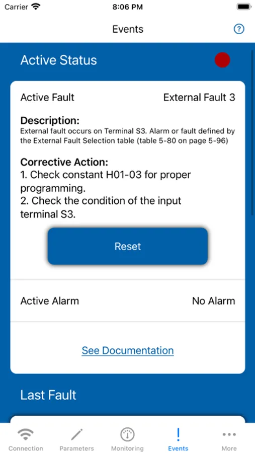 - Fault and Alarm Status, Description, and Corrective Action Steps