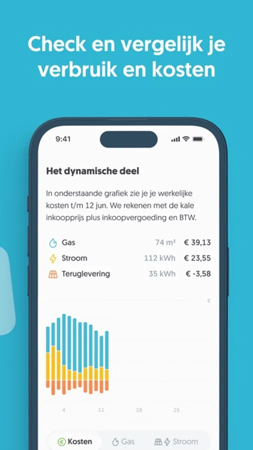 - Laat je precies zien hoeveel je verbruikt en wat dat kost