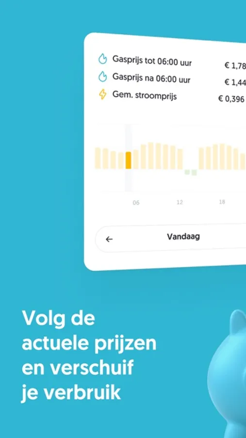 - Geeft je inzicht in de actuele prijzen van stroom en gas