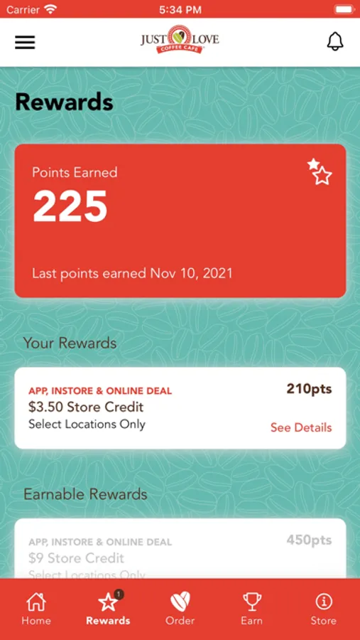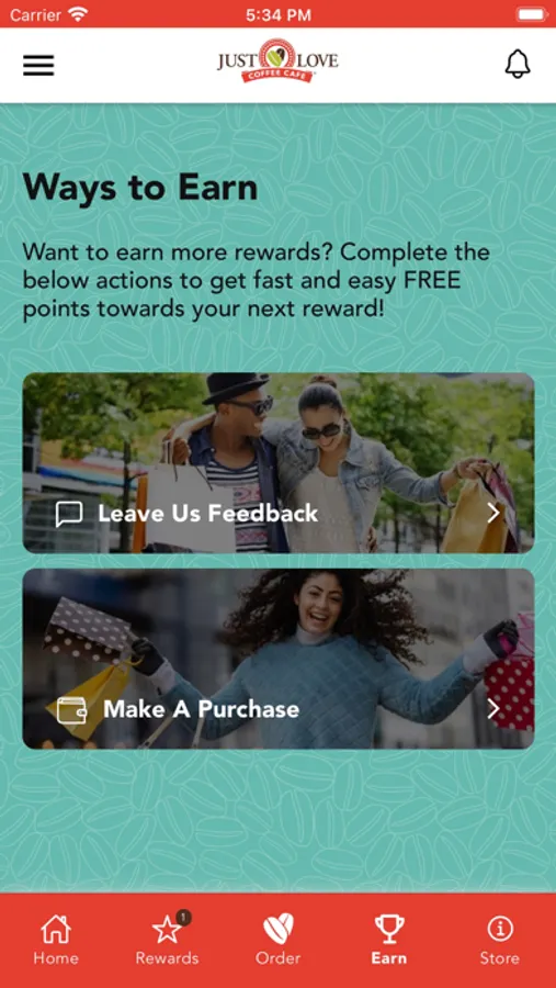 Just Love Coffee App - Earn and track your rewards at participating stores