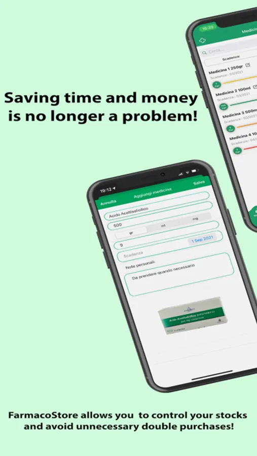 FarmacoStore is here to help you saving money and time in queuing (lining up) at the pharmacy to buy products you already have! You are a click away from your medication cabinet, the capsules’ storage of each meds and their expiry date, without wasting $ and time! Last but not least, FarmacoStore will send you a notification 1 month prior to the meds’ expiry date in order to allow you enough time to purchase it again.