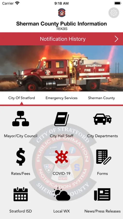 The City of Stratford/Sherman County Texas mobile application is an interactive app which will help improve our communication with the citizens of Stratford, Sherman County, and surrounding communities. The purpose of this app is to improve our ability to communicate to our citizens Information which will include, but not be limited to Major Incident Push Notifications, NWS Weather Alerts, Community Events, Employment Opportunities, Important Contact Information, Maps, and more. Citizens may submit a crime tip directly through the app, as well as see and share social media posts. By empowering creative relationships with Community Members using technology, the citizens of Stratford and Sherman County will achieve our mission of ensuring Sherman County is a safe place to live, work, and visit. This app is not meant to be used to report emergency situations. If you have an emergency, please call 911.