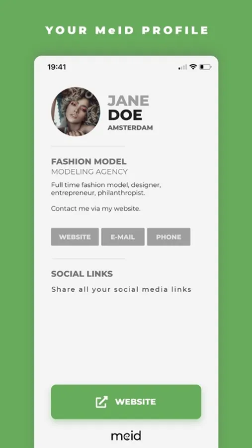 With MeID you can create and customize your digital identity with a modern and minimal look and share it easily with your friends and colleagues, with a smart, and easy to use digital card.
