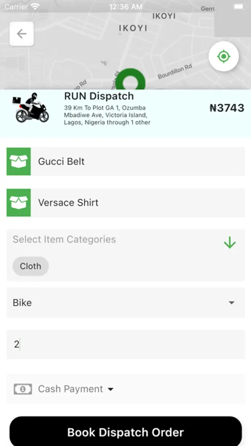 * Quality Multiple Options: Best service, yet several options. You are paired to the closest dispatch bike(either an individual or under a company). You can also now pick up to 5 delivery destinations with detailed information on the delivery item