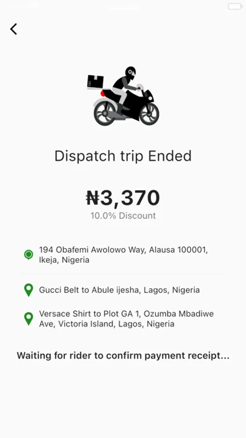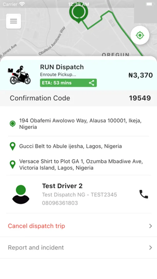 * Safe: our live map tracking(GPS) keeps you in the know of every move made by your dispatcher, also there is an OTP that is shown on your screen that until it’s given to your dispatcher, he remains stuck on the ride and can NEVER end the trip. All our riders are insured. You can also pay securely with either cash or your card after a successful dispatch trip