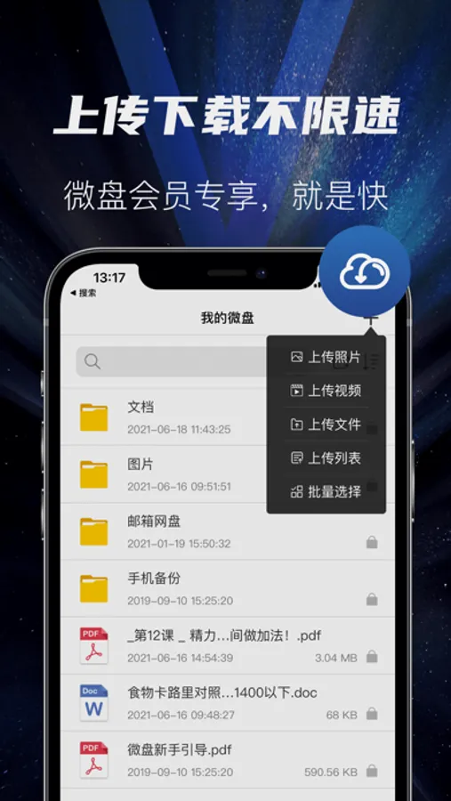 “微盘”是一个拥有超大容量和极高安全性的网络硬盘,向用户提供高效、稳定、安全的网络存储服务。