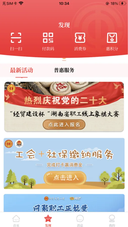 “湘工惠”APP是湖南省总工会为服务全省各级工会和广大工会会员而建设的思想引领,活动参与,普惠服务的平台,主要功能为:为各级工会提供服务号开设,活动管理,服务推荐,资讯发布等功能;为工会会员提供入会转会,法律服务,困难帮扶申请,在线支付、消费券使用、商品团购,活动参与等服务功能。平台将不断进行迭代,逐步丰富功能模块,为各级工会和广大会员提供更多服务。