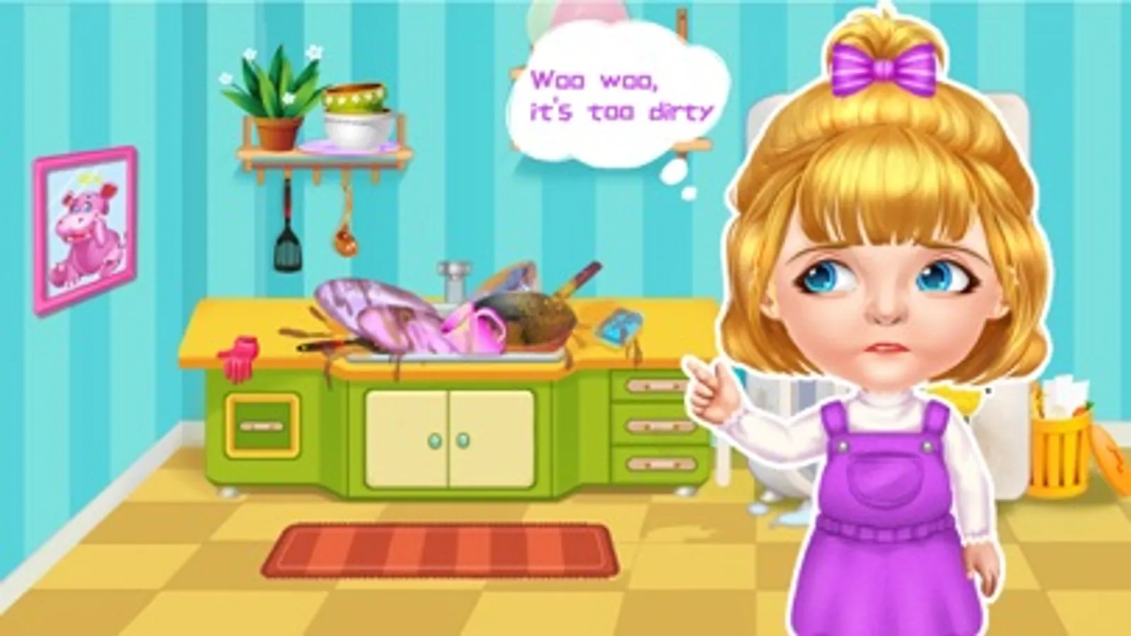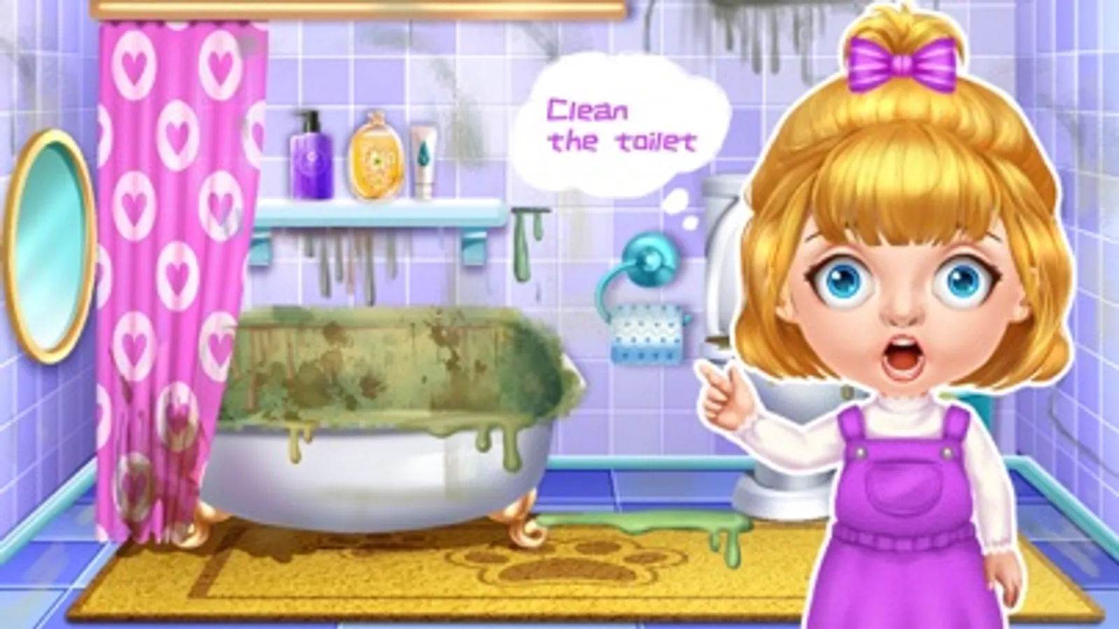 Baby's room is too messy! What should I do? Don't be afraid. Home cleaning day can help your children keep their rooms clean and tidy, including the kitchen, living room, bedroom, toilet and playground. Children can learn all kinds of cleaning activities. Here you need to tidy up the furniture, the lights and the pictures hanging on the wall, clean the cobwebs, put back the baby's toys and other items, and also throw away the garbage, brush the stains, clean the floor and other things! So if you want to challenge and test your cleaning ability, why not try home cleaning day?
