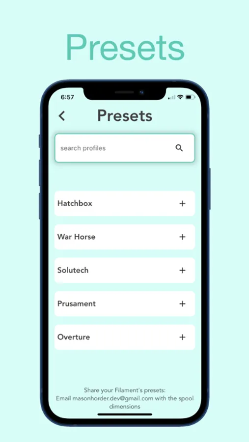 This app easily helps you measure filament left on your spool of filament. Using preset profiles only takes a minute and can give you a good estimate of filament left.