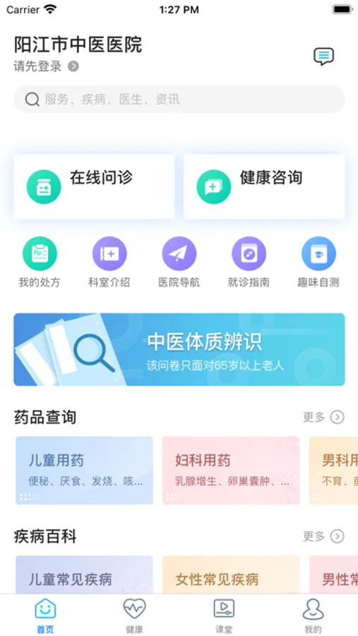 阳江市中医医院-公众端主要是为有医疗健康服务需求的用户提供以电子病历和电子健康档案为基础的自我健康管理、就医智能服务以及医疗健康周边第三方增值服务的健康服务平台。APP提供在线咨询、预约挂号、健康课堂、健康计划、指标管理等功能,为大众健康服务。