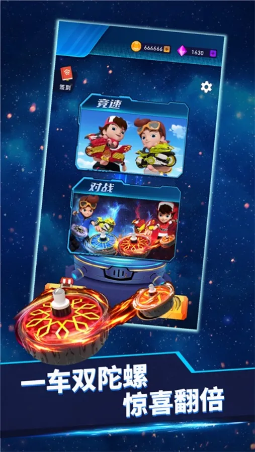 魔幻陀螺5酷炫战骑到来!酷炫摩托车+陀螺组合,让你速度与激情一把,尽情享受竞速的畅快感。