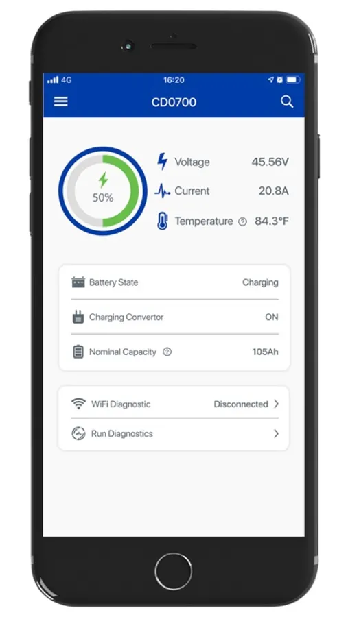 The smart battery pack has a built-in remote Bluetooth module. It connects to the app via Bluetooth and the mobile phone. The app can read the following information: