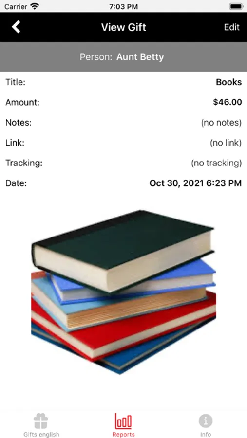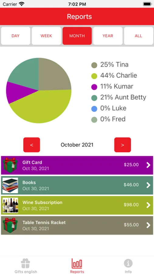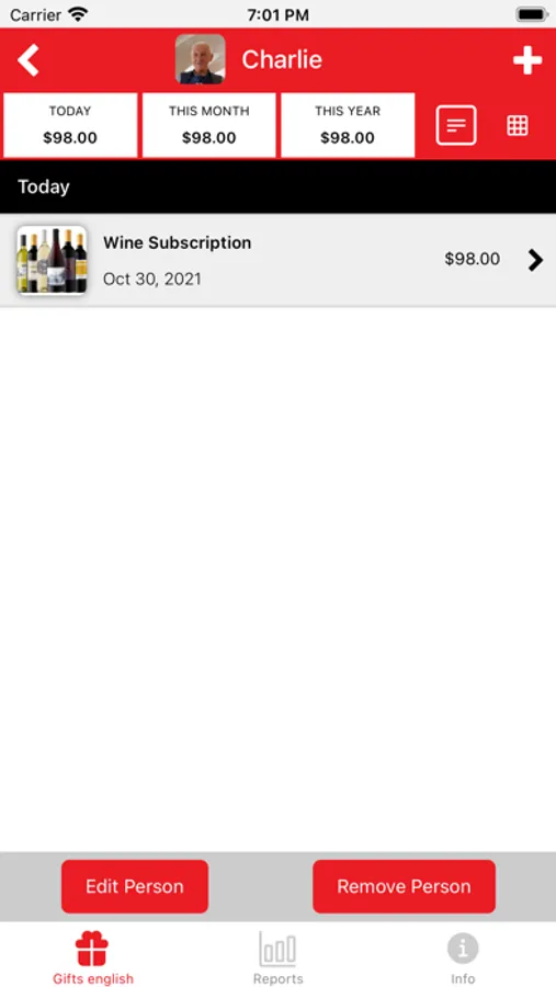This simple to use app allows you to track your gift spending, see summaries and reports.