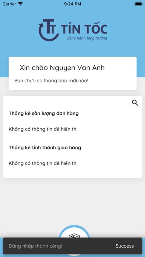 Ứng dụng dành cho khách hàng sử dụng dịch vụ giao hàng của CTCP Tín Tốc, với các tính năng: