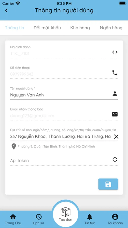 - Quản lý hành trình đơn hàng.