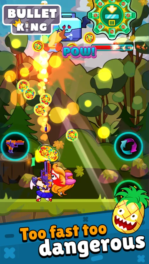 Apart from one of the most fun gun cartoon shooting games, it's also a game for fruit shoot games lovers. You'll find fun and colorful characters with funny weapons to shoot fruits and candies. If you are looking for fruit shooter games for kids and adults which can allow you to have a great delight and refreshment, then Bullet King: Fun Cartoon Gun Shooting Game Offline is for you