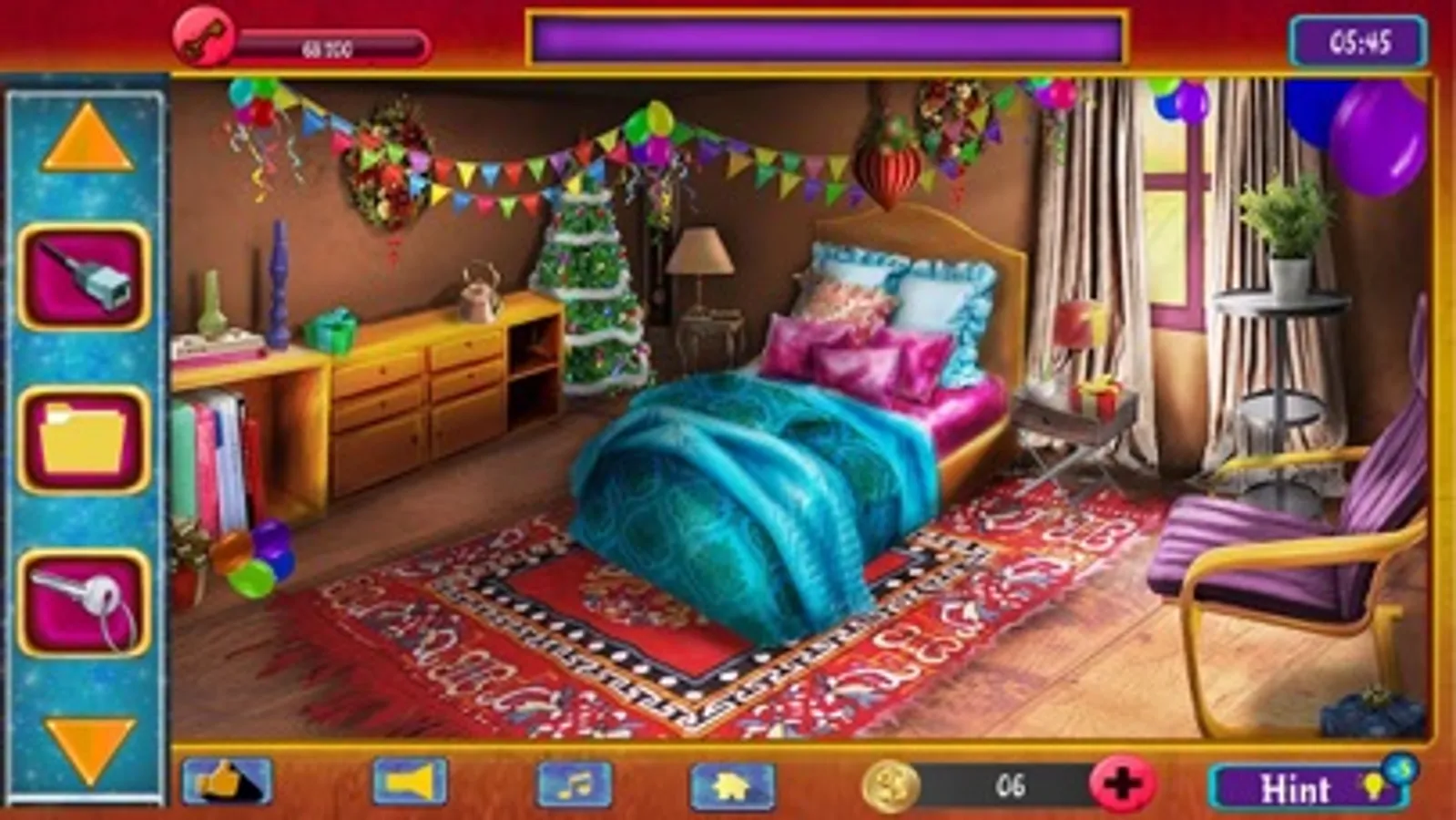 The floors and rooms are highly decorated for Christmas and New year. Find all the massive numbers of hidden objects in all Christmas celebrations and matching the objects, collect the hidden key, open the doors and locks then finally escape from the room. It will be taken into the real feel celebration in front of Santa and Bunny.