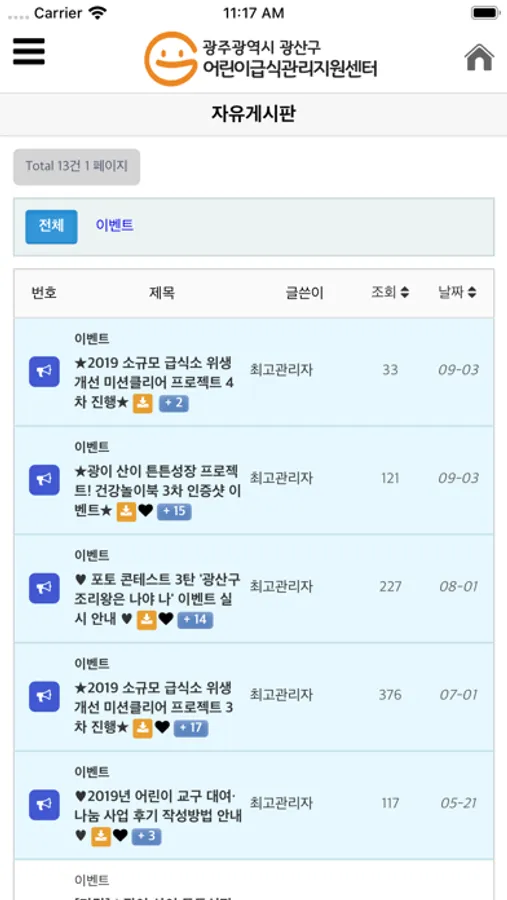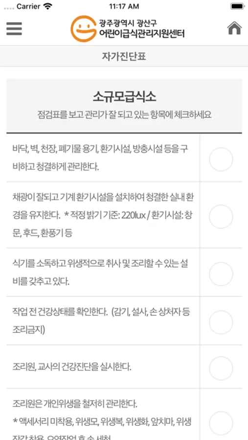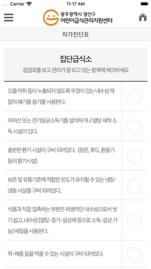 본 센터는 영양 위생 안전 분야의 어린이 급식운영 전반에 걸친 서비스와 정보를 제공하고 이에 필요한 교육 프로그램을 지원하여 광산구 어린이의 영양상태를 개선하고 건강한 급식환경을 선도하는데 앞장서겠습니다.