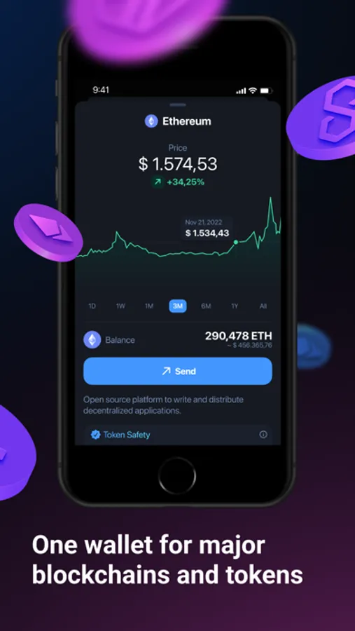 The 1inch Wallet is a fast and secure non-custodial DeFi crypto wallet. Use the app to store, send, receive crypto on Ethereum, BNB Chain, Polygon, Optimistic Ethereum (OΞ), Arbitrum, Gnosis Chain, Avalanche, Fantom, Aurora and Klayton in a protected and efficient way. The wallet supports hundreds of tokens across all of these networks, including ETH, BNB, MATIC, AVAX, DAI, USDT, USDC.
