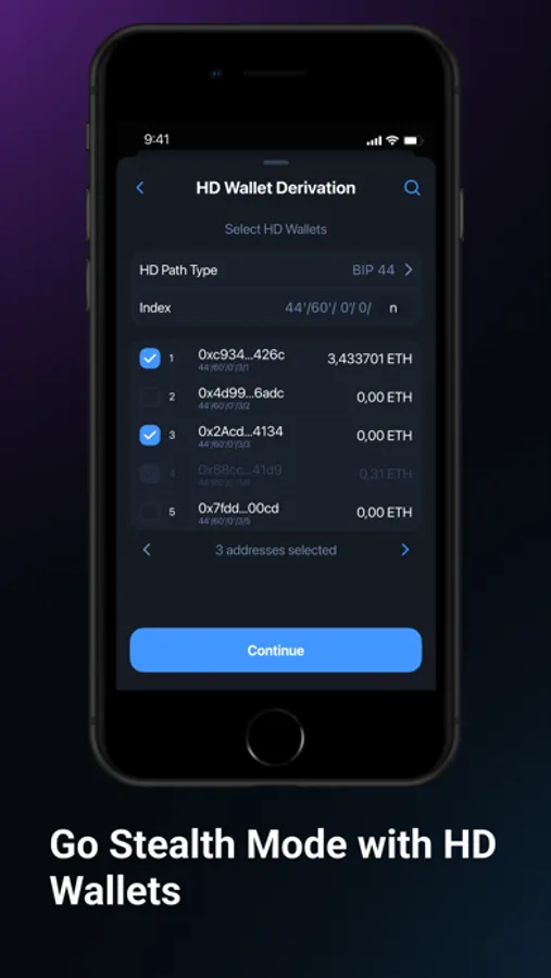HD Wallets - the 1inch Wallet supports BIP-44, Ledger Live and custom derivation paths.