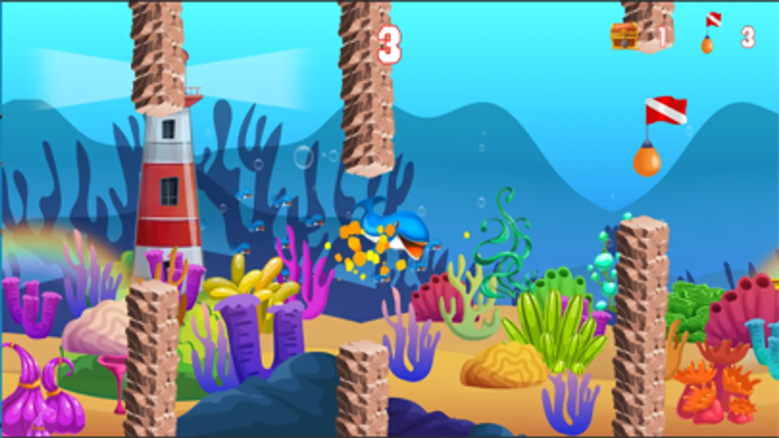 Underwater Acts of Kindness Whale is in the sea and going to reach the light tower. Help the whale reaching the light tower.