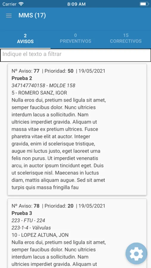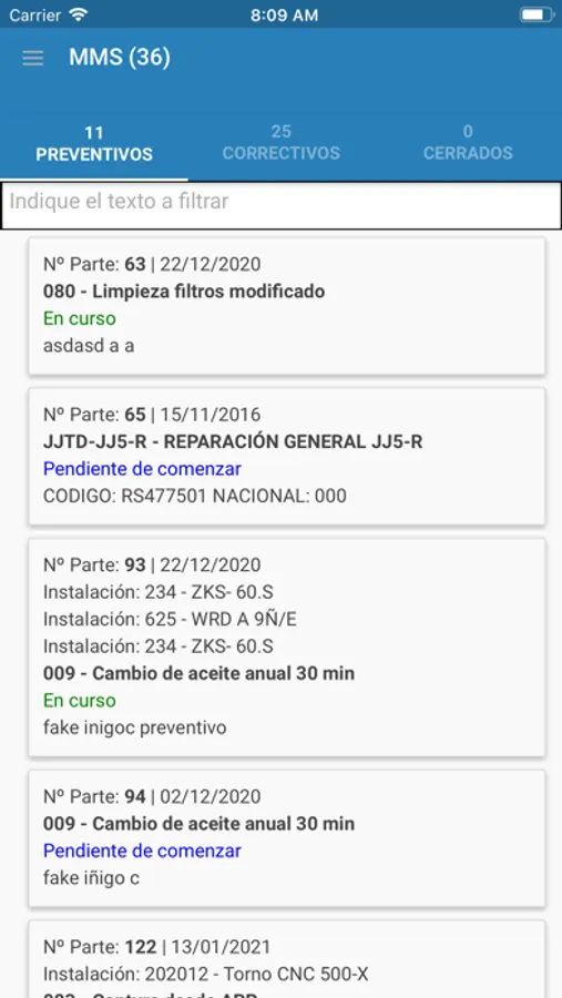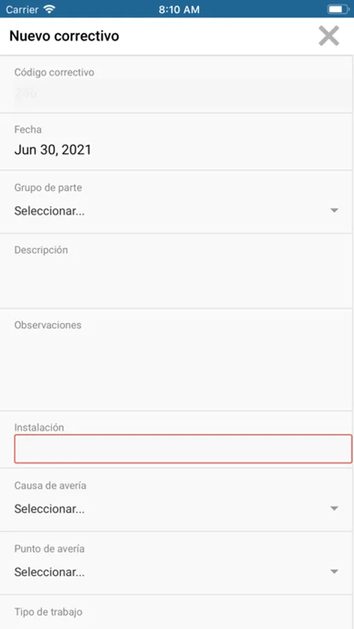 Aplicación para el mantenimiento de instalaciones (GMAO)