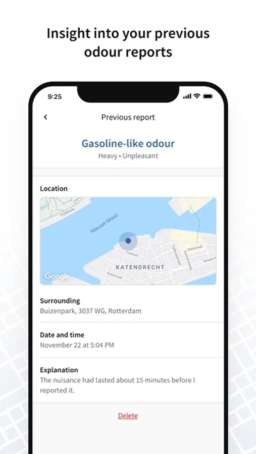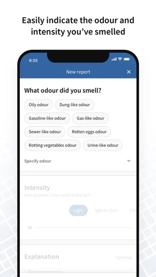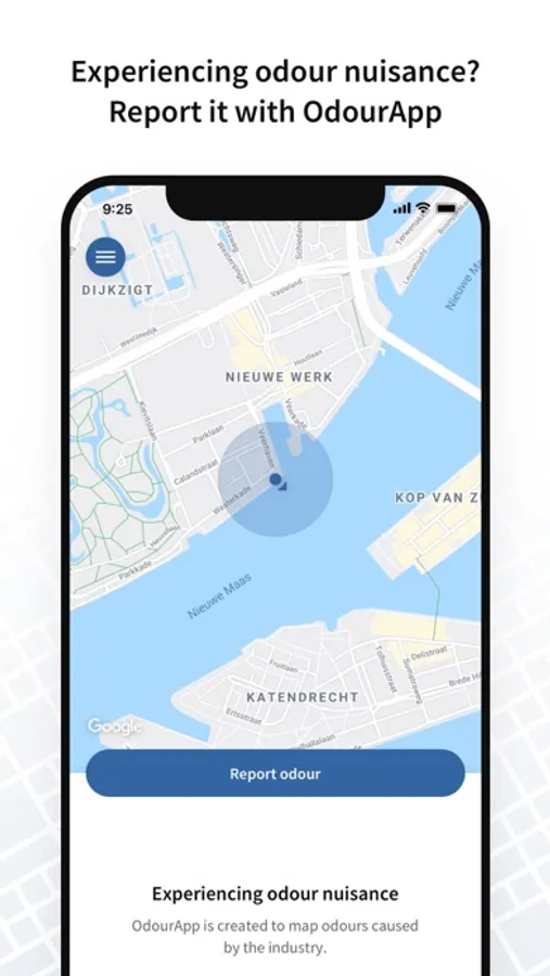 Do you experience odour nuisance? The Odourapp is intended for mapping odours caused by industry, but also for odours released around, for example, agriculture, livestock farming and waste processing activities. You can use your current location and time or manually indicate a location and time where and when you smelled the odour. In the app you indicate which odour you have smelled by choosing from a number of options and determining the intensity. Once you have entered the location, time and odour you can send the notification. We use this information to link odour observations to other data sources for mapping odour nuisance.