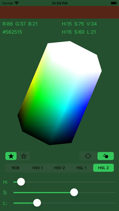 You can intuitively see the conversion process between them by switching the geometric representation of the color model.