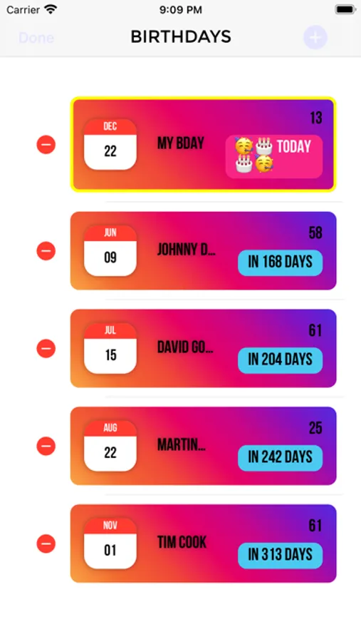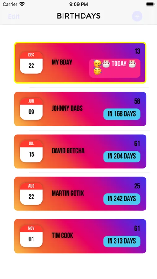 Real friends can remember your birthday without Facebook, but can you? This app will automatically count & sort the number of days left until your friends' birthdays, so you don't end up forgetting about them!