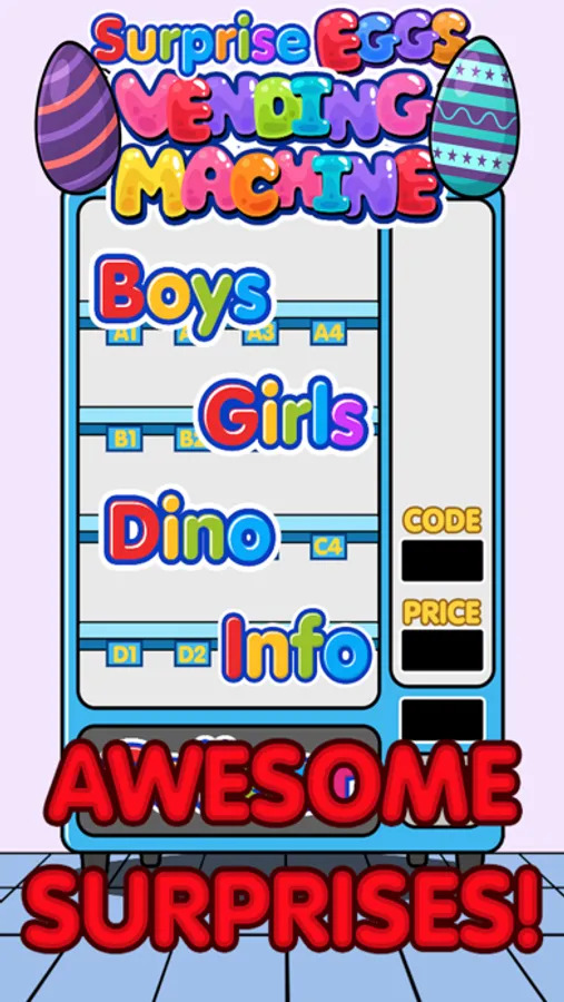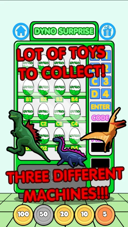 Choose among three vending machines: one is for Boys, one is for Girls and another one with Dinosaurs