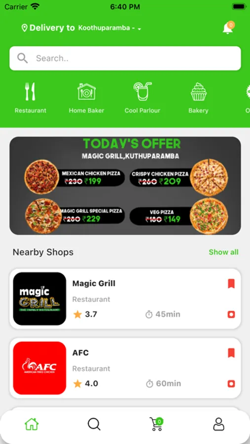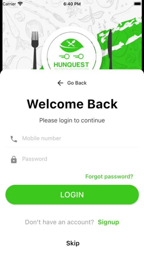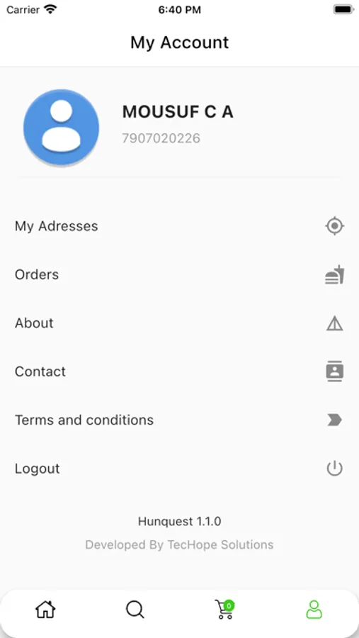 Hunquest is a food delivery app in Kannur District. Customers can buy home made as well as restaurant food items at feasible rate through our Hunquest app. After getting the order, our delivery executives will deliver the ordered items to our customer's door step in minutes.