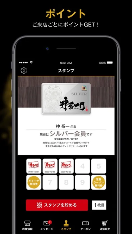 対象店舗共通の来店ポイントを貯めて特典をGET!