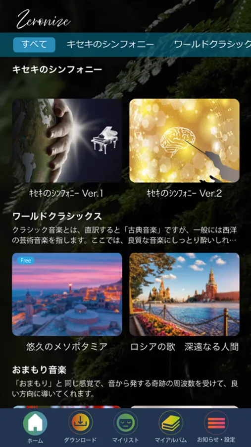 「揺らぎ」から得られるリラックス効果は精神的なものだけでなく、肉体的なものまで強く影響を与え、活性化してくれます。また、世界のクラッシックも聴くことができ、良質な音楽にしっとり酔いしれたい世界へ誘います。