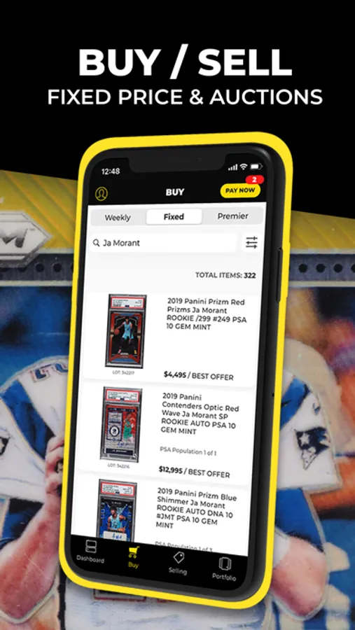 Users can easily sell their cards through our curated Weekly Auctions, our high-end Premier Auctions, or as a fixed price with the ability to accept offers on our Fixed Price Marketplace.