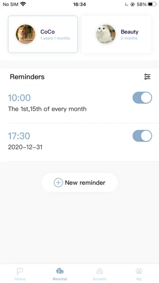 You can add several pets into the pet management and set reminders for each pet.