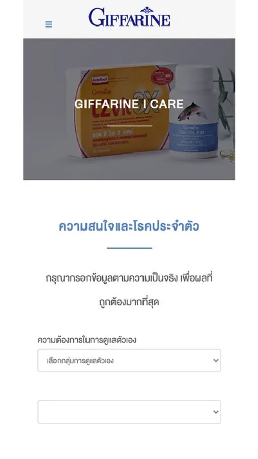 Giffarine iCare ค้นหาสารอาหารที่เหมาะสมสำหรับคุณ