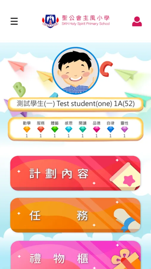 每位學生均可加入「自我挑戰」獎勵計劃應用程式的個人帳戶。學生首先為自己於本學年的學習、自我管理及關愛他人各方面訂立目標,繼而於 日常表現盡量做到最好,以期達標。