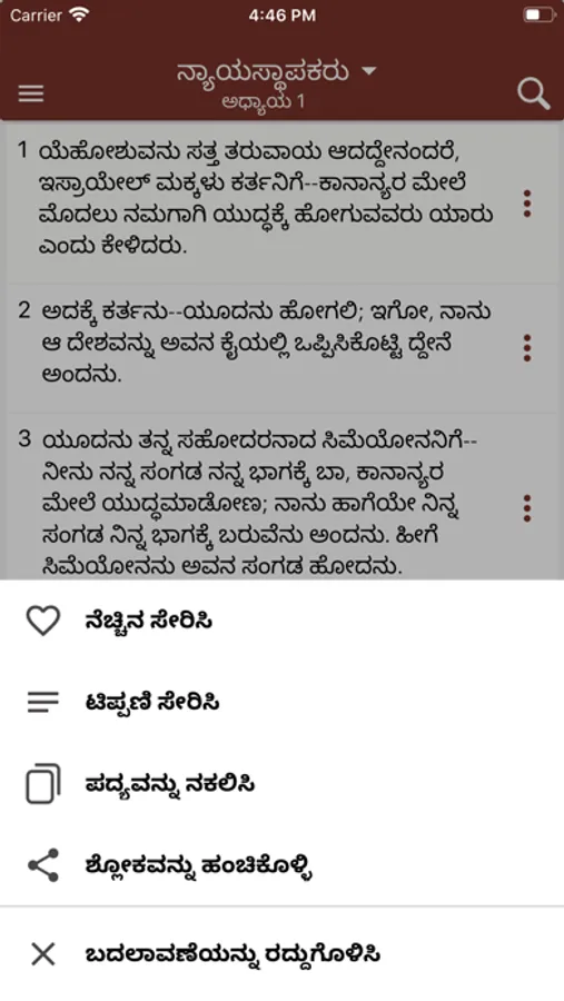 Kannada Bible also supports zooming, copying and sharing of the verses you like
