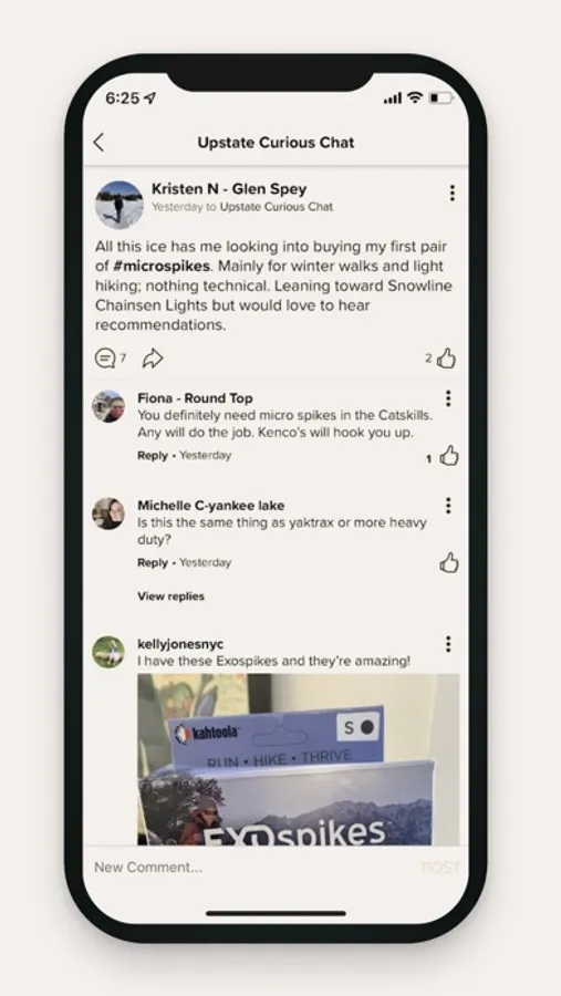 “Upstate Chat” is the main feed where you can share your finds or the view from your backyard (including videos and photos). By using hashtags like #restaurants, #outdoors, #townname, #county, etc., we can make things easy to find - and the section for “Popular Hashtags” will be just that.