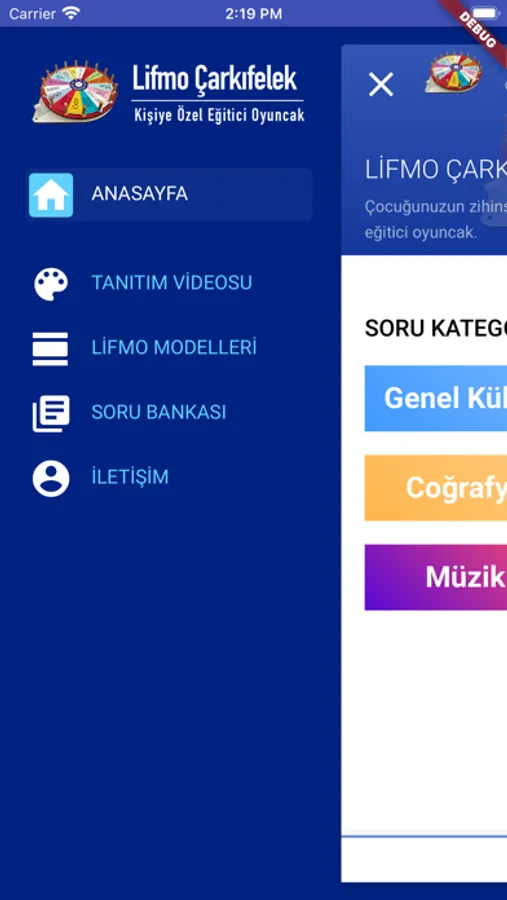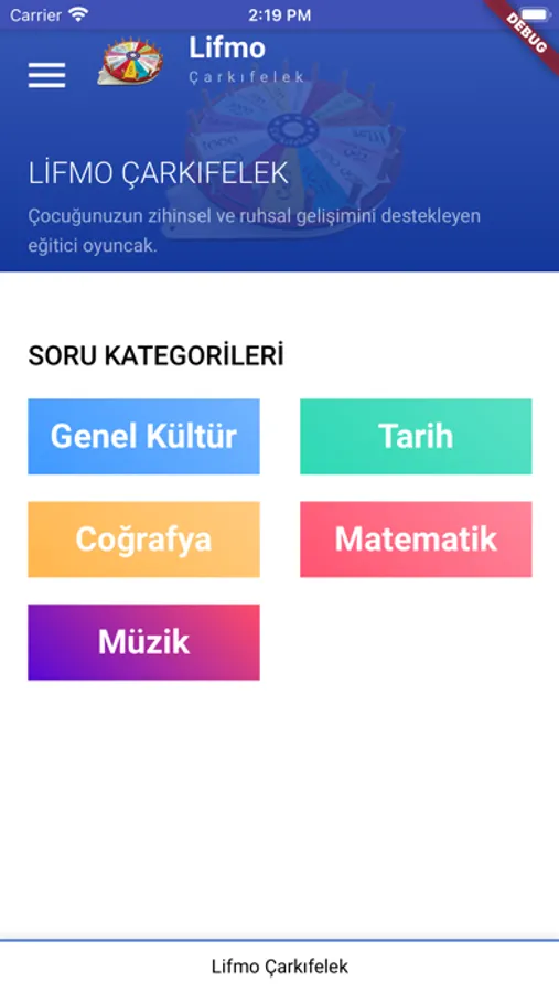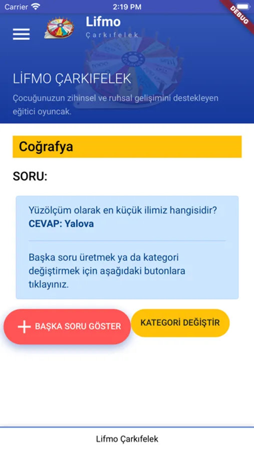 Eğitici oyuncak Lifmo Çarkıfelek oyuncularının, soru bankası modülü.