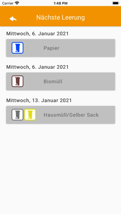 - Online-Abfuhrkalender mit Erinnerungsfunktion zum Herausstellen der Behälter. Mit dem Abfuhrkalender verpassen Sie keinen Abfuhrtermin inkl. der Berücksichtigung von Feiertagsverschiebungen.