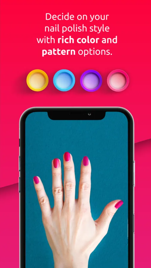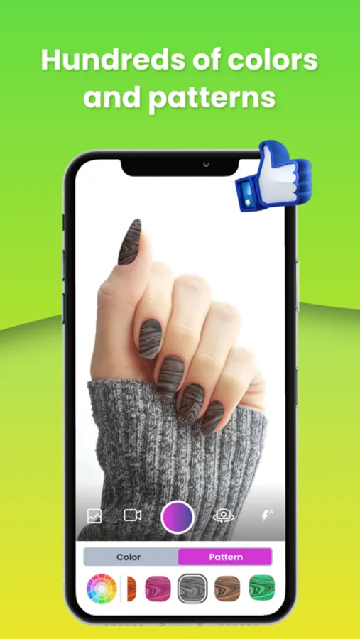** With Nail Polish Hair Color Cam, you can renew it with the color or pattern that best suits your style, and share it on social media or with your friends.