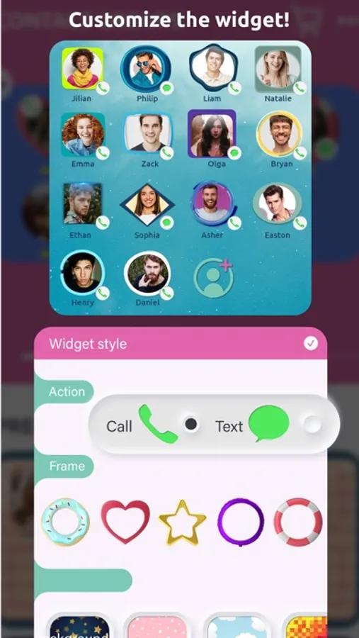 The simplest way to call or text friends and family is with this widget for home screens! Favorite Contacts Widget Theme allows you to organize and personalize your phone! You get to add contacts you frequently call or text all in one place. Plus, you can customize the widget design by choosing backgrounds, frames, fonts, and colors. Beautiful and useful – custom widget for favorite contacts!