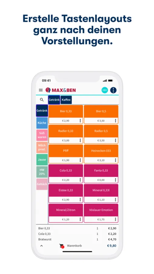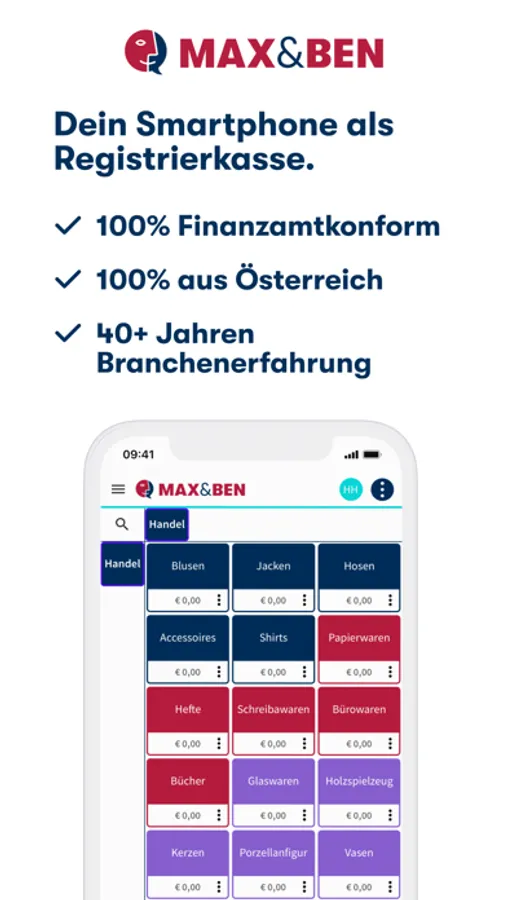 Max&Ben ist die Registrierkassen-App für Handel, Gastronomie und Dienstleister wie Bäckereien, Food-Trucks und Friseure. Sowohl für den mobilen als auch den stationären Einsatz geeignet. Drucken Sie kinderleicht RKSV-konforme Belege für Ihre Kunden und begeistern Sie Ihre Mitarbeiter mit der einfachen und intuitiven Bedienbarkeit der Kasse. Ihr Smartphone oder Tablet als Kasse verwenden? Kein Problem! Laden Sie Max&Ben auf Ihr Gerät herunter und starten Sie damit, Ihr Unternehmen einen Schritt voranzubringen!