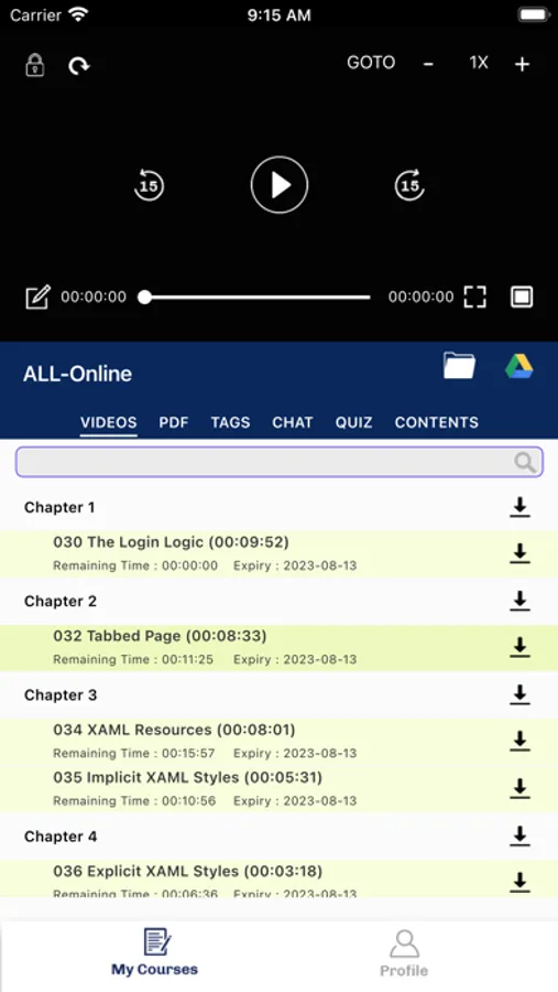 DTH LMS is a Protected Educational App which saves your videos being copied. In this version, end users can stream videos online or play them after download. All the videos associated with course will be displayed section wise, so that users can browse videos easily. All basic features like play, pause, backward-forward, speed play, contrast etc are present during video playback.