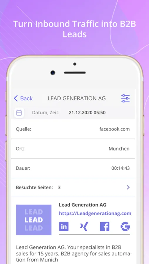 LeadRebel is a software for B2B lead generation. We show you which companies visited your website, company and contact information of the contact person.