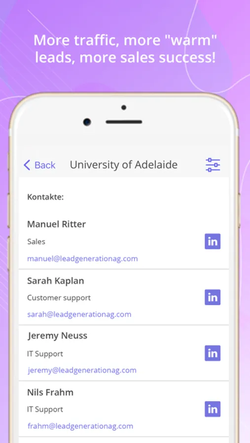 Which companies did visit your website? Who are the contact persons within these companies? What product or service are they mostly interested in? We show you detailed company information, list of employees and contact details - thus everything you need for a successful B2B lead acquisition.